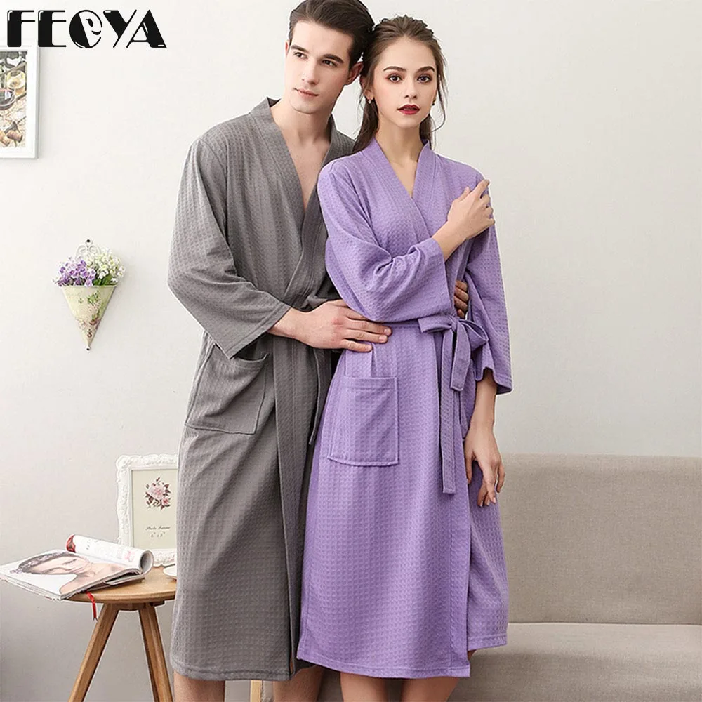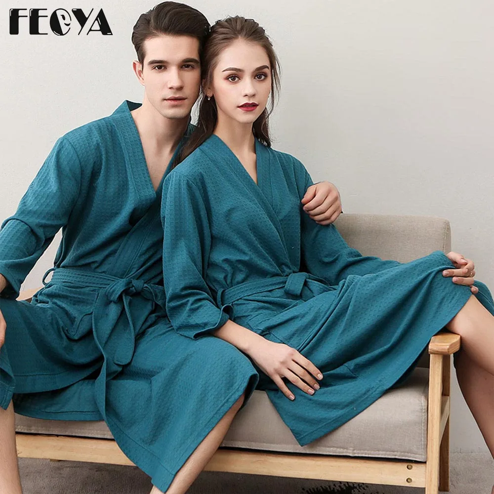 BEST Spring Autumn Lovers Robe Long Nightwear Female bamboo fiber Kimono Robe Couple Nightgown Fashion B