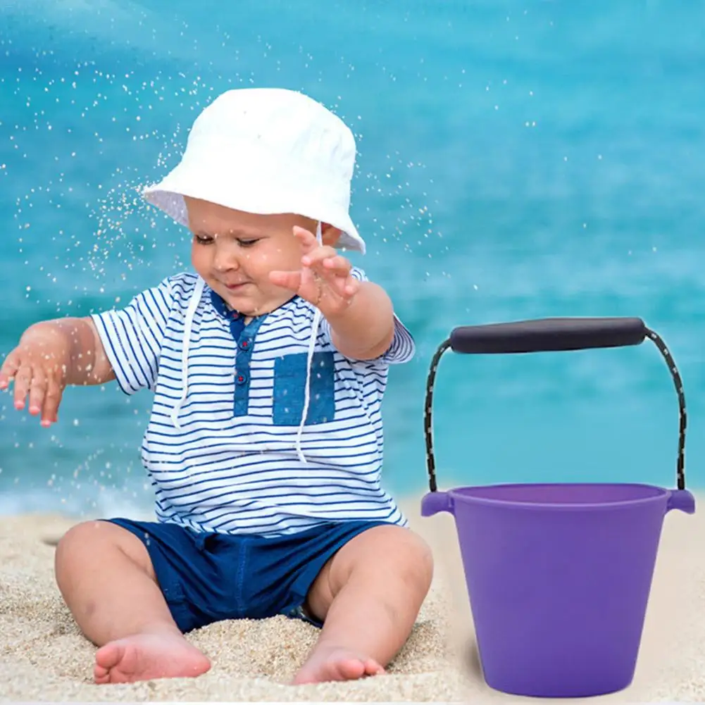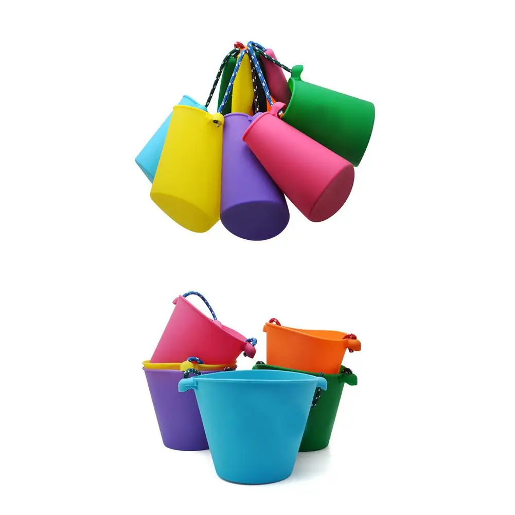 6 Colors Beach Bucket Silicone Folding Hand-held Barrel Toy Baby Kids Shower Bath Toy Sand Dabbling